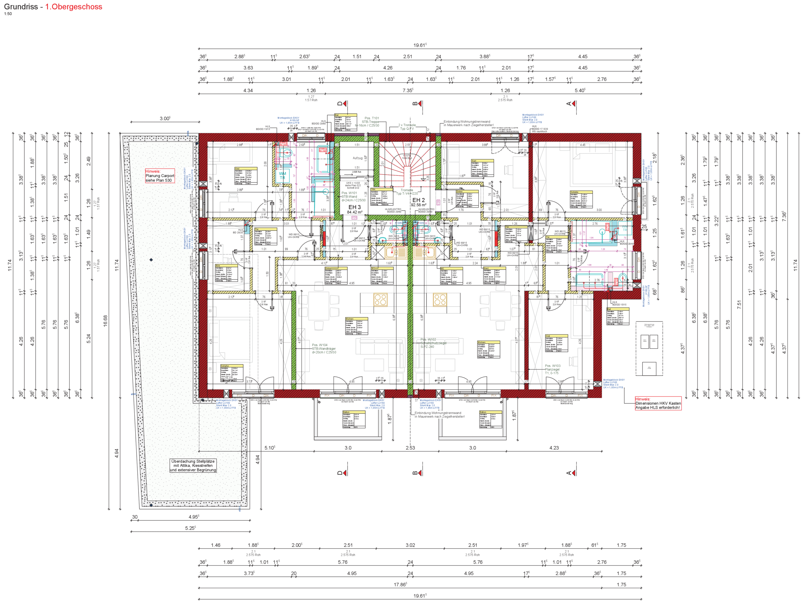 - Hedwigstrasse – Trostberg – Neubau von 2 Doppelhäusern mit Carports